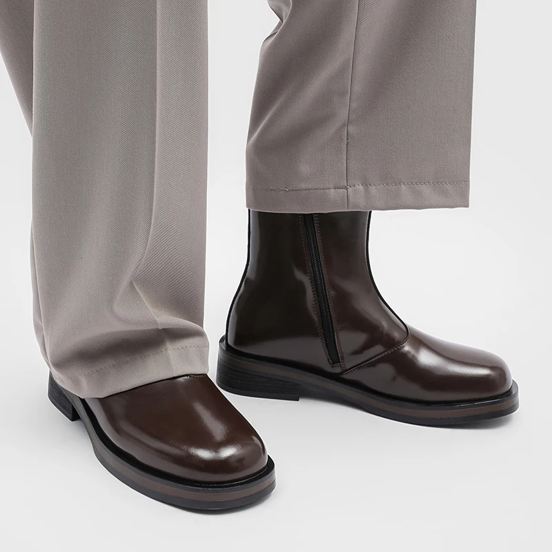 Leather Square zip up Toe Ankle Boots